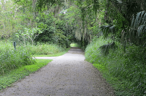 Florida Trailhead Park is a paved trail that runs through Lake Mary across various neighborhoods and shopping centers. This is a great trail to get the blood flowing and see other locals in the community being active. No motorized vehicles are allowed, but dogs are always welcome. There is a good chance you will see wild bunnies along the trail over by the playground. There is also outdoor exercise equipment available to use on the side that runs along Rinehart Road. This spot will take you to a public parking next to the Planet Smoothie for easy access to the trail.