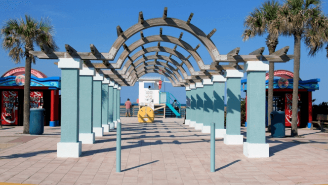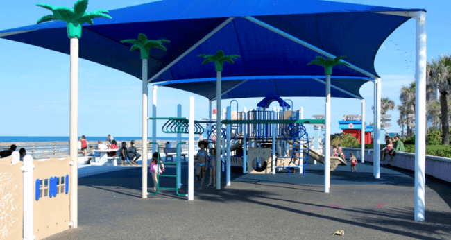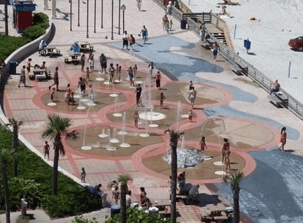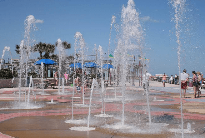 Sun Splash Park is three blocks south of the International Speedway Boulevard and S. Atlantic Avenue junction in Daytona Beach. Visitors may enjoy an plenty of parking spots, facilities, showers, a freshwater splash pad, picnic shelters, playgrounds, and over 600 feet of direct beachfront access at this popular wheelchair accessible park.