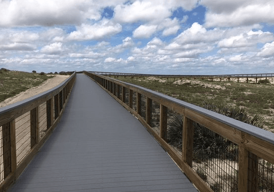 Smyrna Dunes Park is a beautiful park located near the northern end of New Smyrna Beach. It's a terrific area to go for a run, with a 1.6-mile boardwalk track winding through and over dunes, with views of the ocean, some covered canopy, desert-like landscape, and views of the Ponce Inlet and lighthouse. There are some natural pathways as well. Enjoy as many miles as you like on the rough, compacted sand of New Smyrna Beach for a longer run.