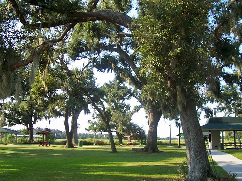 In addition to the park's recreational amenities, the rural setting along the shores of Lake Toho support live oak, cypress and littoral vegetation. As a result, the park provides suitable habitat for bald eagles, Sherman's fox squirrel, Everglades snail kite, sandhill crane, wood stork, gopher tortoise and American alligator. This spot also features an area for a fire pit and volleyball courts.
