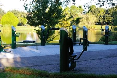 This spot offers green space along Lake Silver featuring regular water skiing shows & a castle-themed play structure.