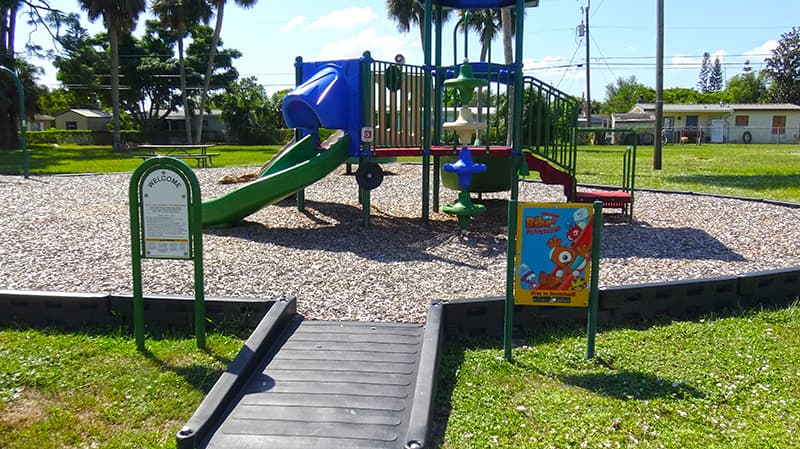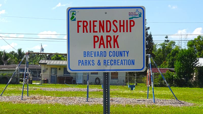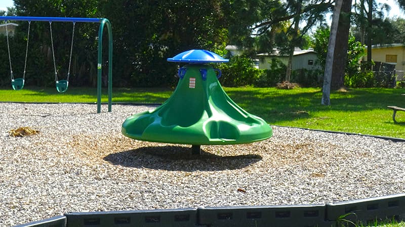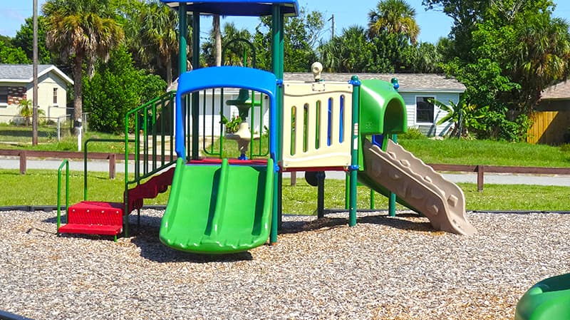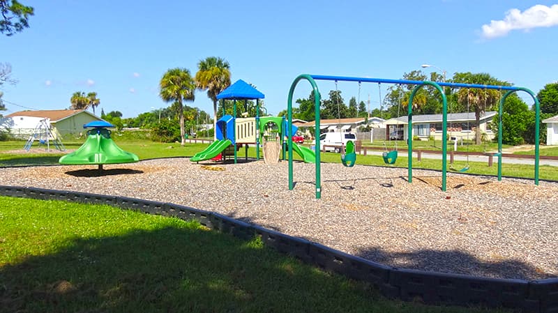 This well shaded park serves the Port St. John community, and has a small green area, swing set, playground, and a bench to sit and enjoy the outdoors.