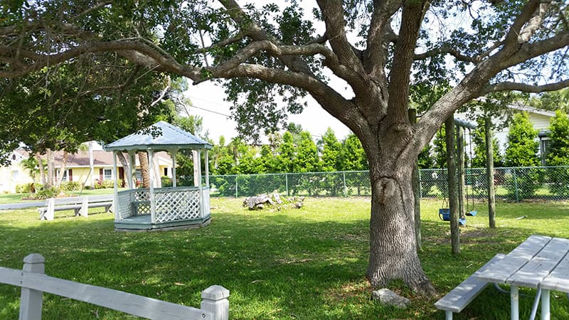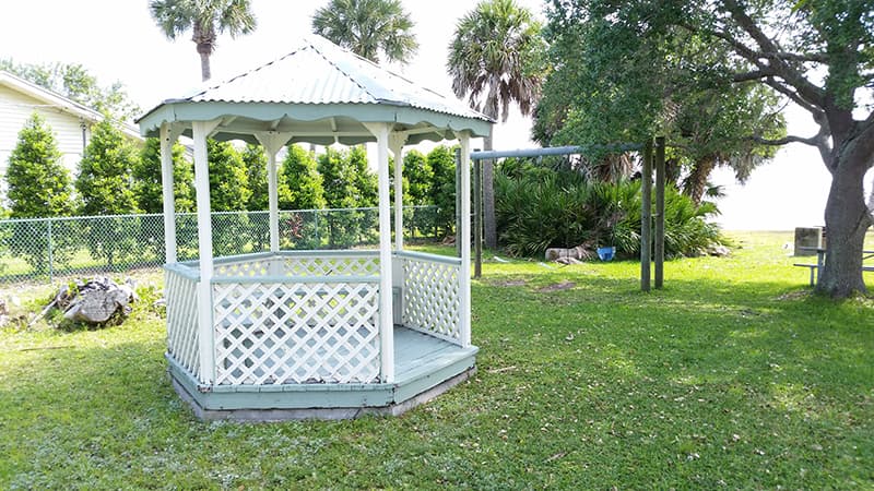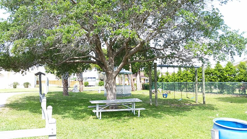 This neighborhood river park has a swing on property, and plenty of open space on the shore of a river giving it an amazing view.