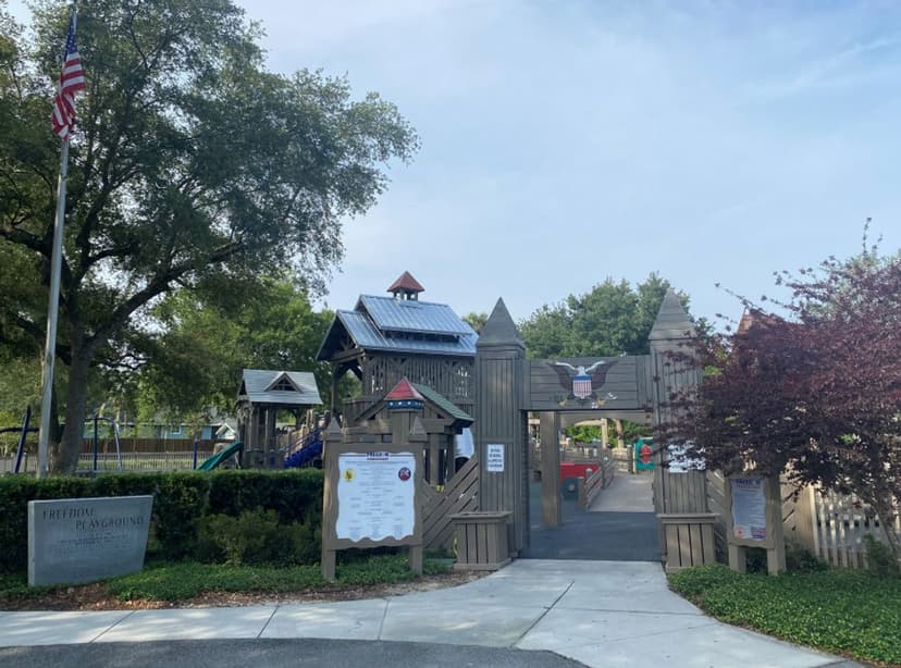The National Register of Historic Places has designated Freedom Playground as part of a historic site. It has a large play area, a paved walking/jogging route, and four pavilions that may be leased for parties and gatherings. It's also the only community-built playground in Deland. A Sensory Butterfly Garden, the refurbished Memorial Hospital Building, which contains the city's Parks and Recreation office, and the Burgess Building, which has various historical displays, all surround Freedom Playground.
