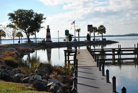 Located on Tremain Street across from Gilbert Park on Lake Dora, Grantham Point Park is sometimes referred to as "Lighthouse Park". Grantham Point Park was created from road rubble and fill to create one of Mount Dora's famous landmarks - the lighthouse. Built to represent the "Port of Mount Dora", the lighthouse appears on many symbols.
