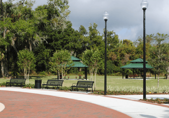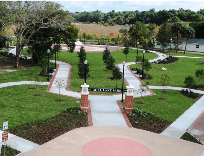 Mill Lake Park is one of Orange City’s newest parks. It features public restrooms, picnic pavilions, park benches, a water feature, splash park, lighting with beautiful landscaping. It now offers additional picnic pavilions and park benches that overlook Mill Lake. Enjoyed by many for use in the various forms of exercise such as walking, jogging, biking, roller blading, and skate boarding, the multi-purpose path is .8 of a mile around the lake. This lake is frequented by yoga enthusiasts, Volusia County runner clubs, or just for a nice midday stroll. The lake offers a natural wetland which serves as habitat for many wildlife species.