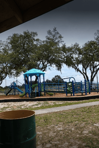 This park has a big basketball court that's great for hosting multiple games at once, and also has a playground on site for the younger children, making it great for bringing the whole family to exert some energy and have fun.