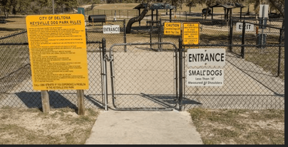 Keysville Dog Park is located on 14 acres of property near Deltona and hosts the yearly "Wags & Whiskers Pet Festival." To safeguard the safety of the animals, the park has separate gated sections for large and small dogs. There are also gated doggy watering facilities available. Within the fenced-in sections, there are seats and picnic tables for the owners.