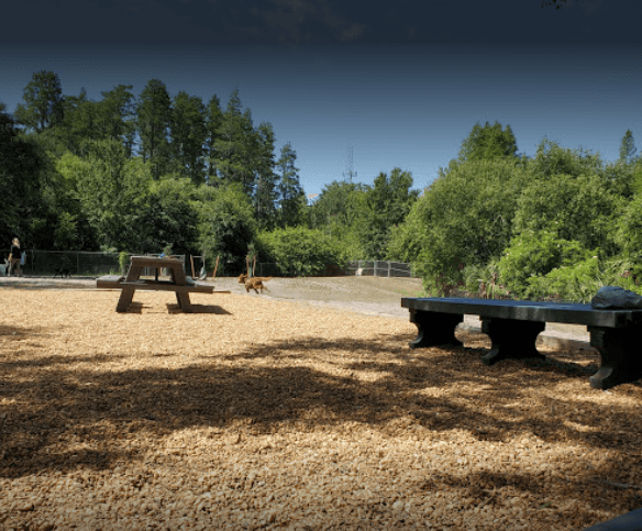 This dog park is very well designed for hosting many dogs at a time in a safe and easy environment. With it's water fountains for people and dogs, picnic tables, dog washes, and much more it makes taking your dogs to the park an easy and fun experience. There are two separate access areas for small and large dogs and water fountains for people and dogs