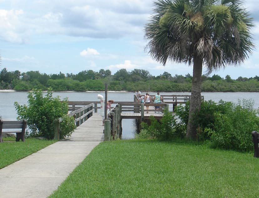Veterans Park is one of several recreational sites offered by the City of Edgewater along the Indian River. It includes a fishing pier and picnic tables.