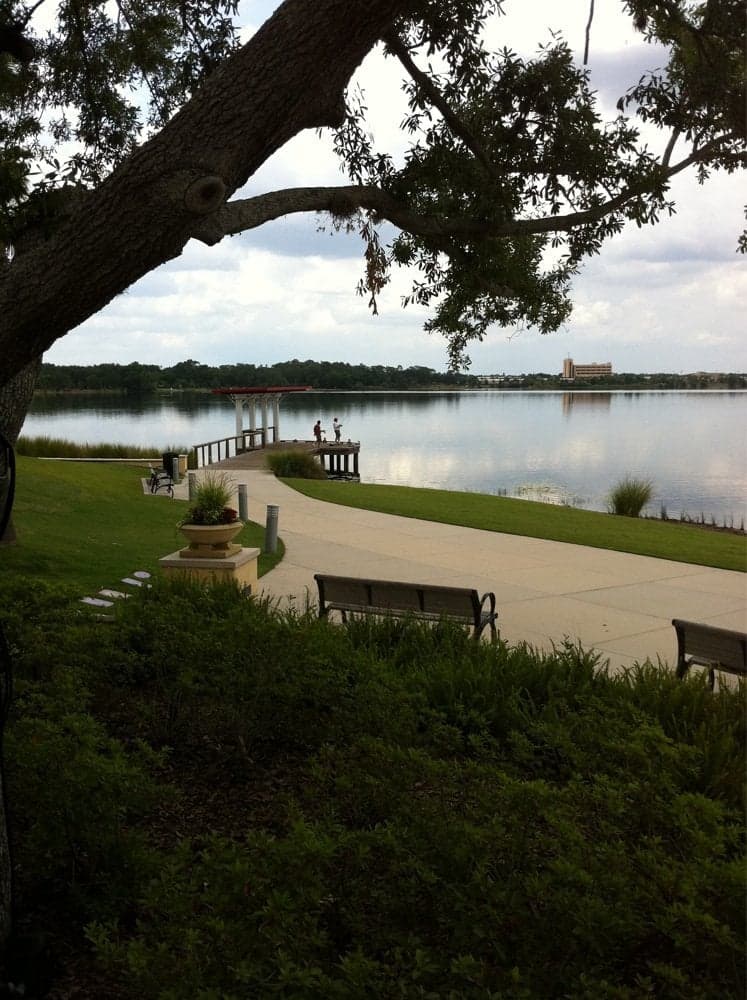 Beautiful walking path around the lake with public restrooms and good food nearby.