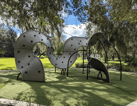 This park serves as the city's artistic and cultural hub, including Casselberry Jazz performances and the Casselberry Art House. It is right next to City Hall and includes an interactive water play area, amphitheater, sculpture garden, playground, boardwalk, fountains, and Florida native and Florida friendly plant and garden species are among the park's facilities. It's a 5-minute bike ride to Secret Lake Park and connects to local biking trails. Pro-tip: Five loops around the main path is 1 mile.