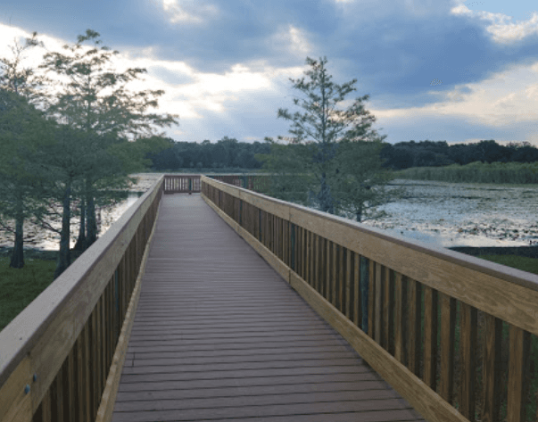 The Osceola Trail runs through this 5-acre park, which is immediately off Highway 17/92. A freshly rebuilt basketball court, an unlighted tennis/pickle ball court, play equipment, a fishing pier, a multipurpose field, and a picnic pavilion are among the amenities available on the grounds.