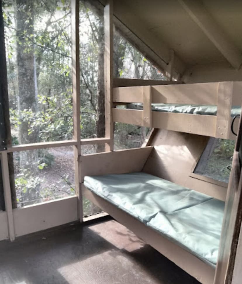 The park is open 8 to sunset daily, with check-ins for camping between 1-4 at the ranger station. Leashed dogs welcome. Camping is in cabins or tents only, no campers or vans, and you must walk to your campsite from the parking area.