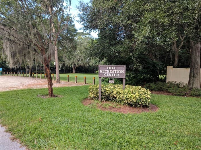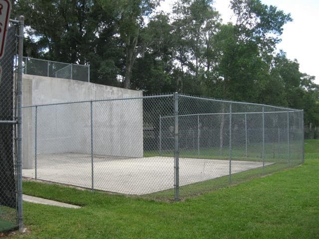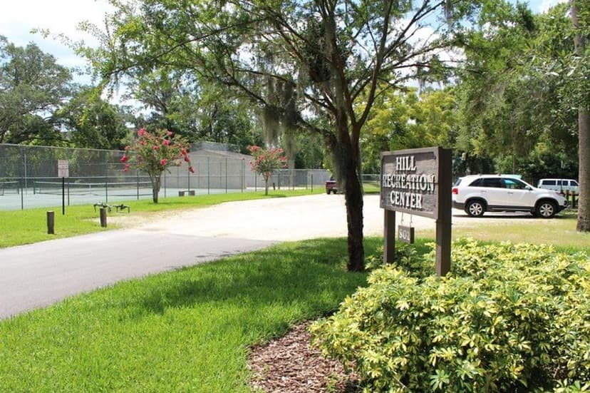 Hill Recreation Center Park has an open field with 2 unlit tennis courts and 2 outdoor open-air racquetball/hitting walls. with on-site parking available here for approximately 20 cars. Please be aware that there are no restrooms at this site.