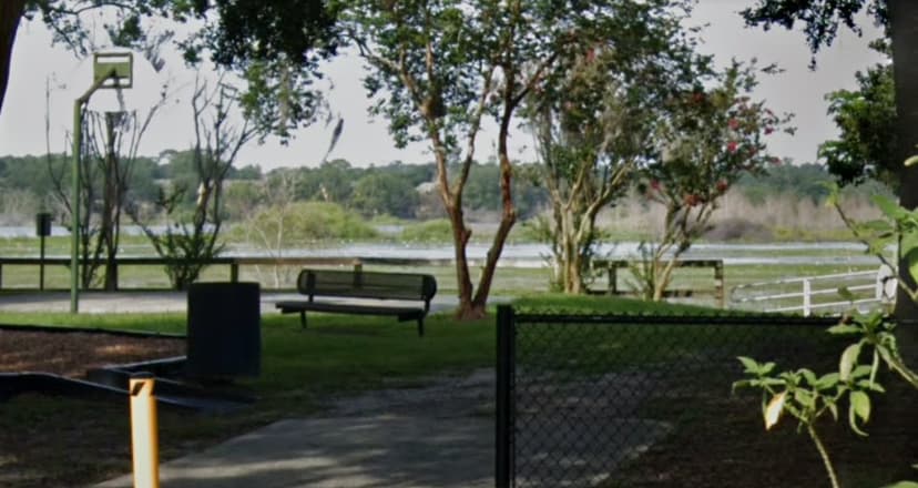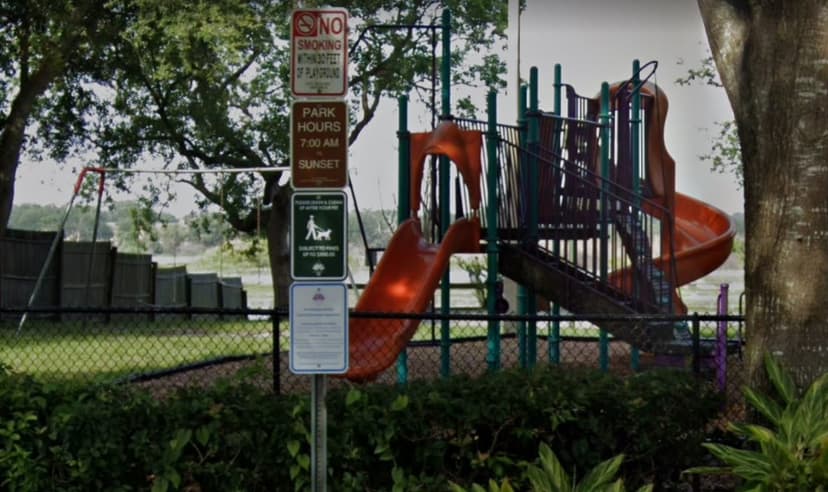 This spot is a small Community Park in Forest Oaks featuring a playground with swings and a basketball court.