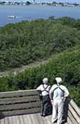 In this park, a 35-foot wooden observation tower offers a panoramic view of Boca Ciega Bay. The park is a stop on the Florida Fish & Wildlife Conservation Commission's "Great Florida Birding Trail". You can view shore birds, wading birds, birds of prey, upland birds & water fowl. Visitors launch a canoe or kayak, or enjoy a picnic under a shelter. The park also has a covered, barrier-free playground for kids and a dog park for both small and large dogs. The small dog park includes an obstacle course for training. The park supports seven natural communities: pine flatwoods, coastal oak hammock, mangrove swamp, salt marsh, bay head and wetlands. Boca Ciega Millennium Park is recognized by Florida Fish and Wildlife Conservation Commission’s “Great Florida Birding Trail” park visitors can enjoy searching for shorebirds, waterfowl, wading birds, birds of prey and a myriad of upland birds. Boca Ciega Millennium Park holds the distinction of the first Pinellas County Park to have opened using only native plants throughout the parks formal landscaping.
