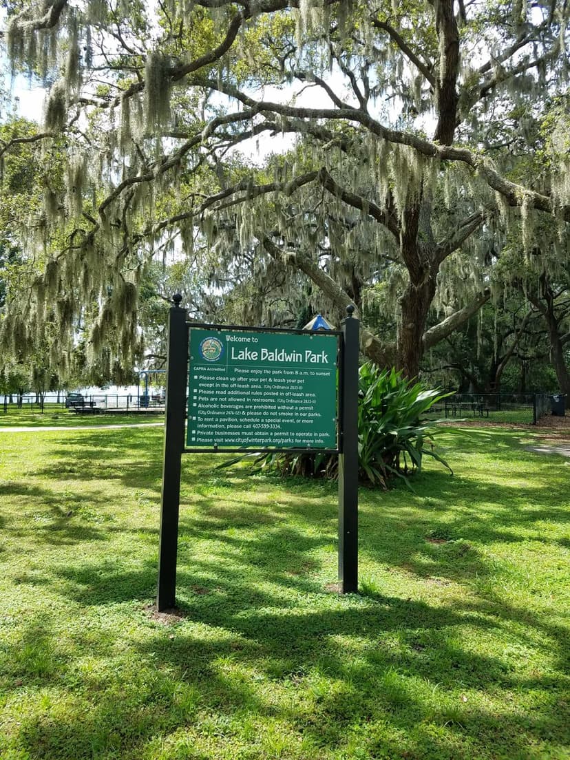 Lake Baldwin Park is a beautiful, shady park that covers 23.16 acres on Lake Baldwin. The park is one of two city parks which boasts a sandy beach. This park is the only park in the city known as “dog-friendly” – dogs may be off-leash during park hours of 8 a.m. to sunset.