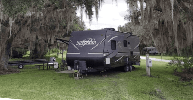 This pet-friendly lakefront campsite near Lake Wales has RV sites with grass pads and 20 tent camping spots. This Central Florida campsite, located near Lake Kissimmee, features boat ramps for airboats, conventional boats, canoes, and kayaks.