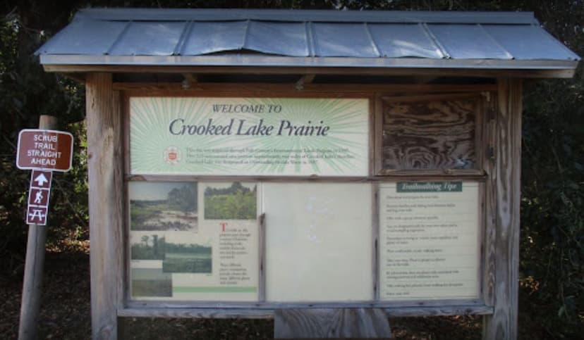 This 525-acre property is Polk County's second-largest lake. Crooked Lake Prairie is a terrific place to come whether you like to fish, hike, or take pictures. The first route leads to a magnificent overlook of Crooked Lake, while the second loops into the scrubs, where you can seek for Florida scrub-jays. You can enjoy fishing on the shoreline and observe the beautiful nature. Two hiking trails help you experience this pristine preserve. One leads to a scenic viewing area overlooking Crooked Lake, and the other traverses the scrub community. Lake View Trail — (0.4 miles, Easy, No Shade) A leisurely walk brings you to a boardwalk that traverses a marsh on the edge of Crooked Lake. Stop to rest at the seating area on the boardwalk and enjoy the view. Scrub Trail — (1.6 mile loop, Moderate, Some Shade) This trail meanders through scrub and scrubby flatwoods. Follow the painted blazes and posts as the trail winds through the open, sandy terrain of a classic scrub habitat. At about the halfway mark, there's a bench perfect for taking a break.