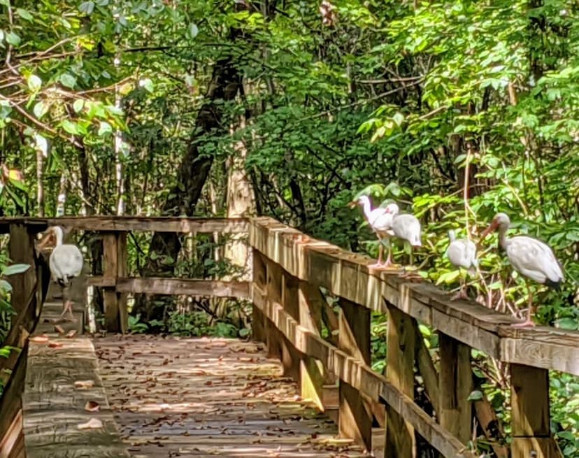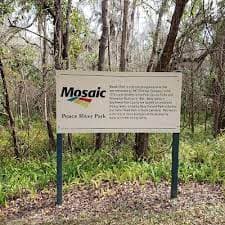 Mosaic Peace River Park is located in the Southwest part of Homeland/Fort Meade. Park at the pull off for the boardwalk (if there’s room) or continue to the parking area at the top of the hill. There is a restroom at the parking area. The length of the boardwalk is mile round-trip that meanders through cypress floodplain forest down to the Peace River. A portion of the boardwalk at the Peace River has handicap accessible viewing and fishing areas including 6 viewing areas and benches.The forest becomes denser as you draw closer to the river, and water marks on the trees show how deeply this floodplain can flood. After a quarter mile, the boardwalk ends at a peaceful spot under the cypresses on the Peace River, where you can rest and watch for birds before heading back along the winding wooden walkway. Mosaic Peace River Park is well known for its diversity of bird species including: limpkins, green-winged and blue-winged teal, hooded merganser, gray catbird, blue-headed vireo, American white pelican, eastern meadowlark, red-tailed hawk, northern harrier, sharp-shinned hawk and swallow-tailed kites. This park is south of Kissingen Spring, once one of Florida’s major springs and swimming holes pumping more than 20 million gallons a day. It stopped flowing in 1950 as the flow of the Peace River dropped precipitously with the increase of phosphate mining in the area. The spring is commemorated with a historic marker at this park.