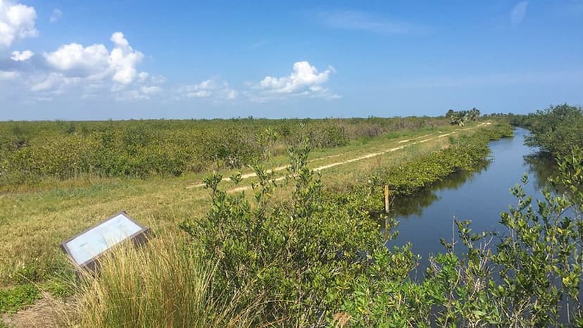 Located nearly halfway along the one-way route of Black Point Wildlife Drive, the Allan Cruickshank Memorial Trail honors a nationally-renowned local ornithologist. Most visitors only take a short walk out to the observation platform over the salt marsh and the observation tower above the impoundments. However, walking the full 6 mile loop, best done early in the day or on a cool winter’s day, will let you enjoy birding along a breezy shore of the Indian River Lagoon.