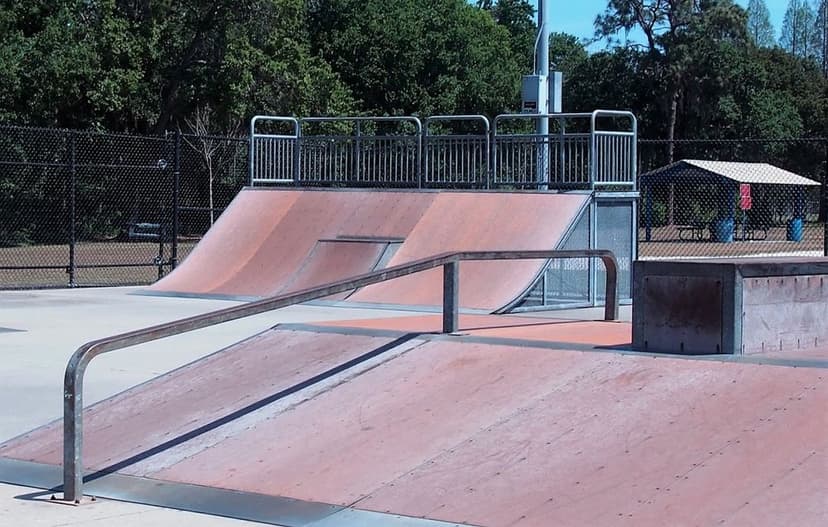 This spot features: • Half pipe, quarter pipe and banked wedge with 4 foot deep deck • 3-sided pyramid with full planter, standard fun box with half kinked grind rail, fun box with half planter • Banked wedge with 4 foot deep deck, quarter pipe with 4' foot deep deck • All component frames constructed of steel, hot dip galvanized after welding to prevent rust problems $3 Day Passes are available at the Skate Park during operating hours.