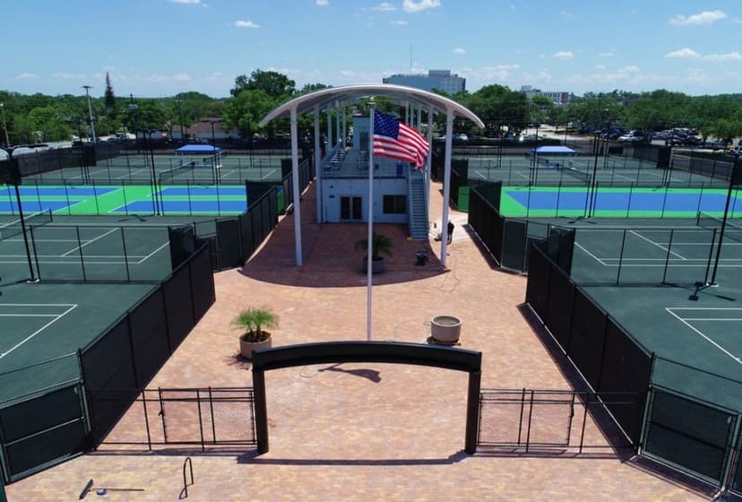 The Winter Haven Tennis Center offers 8 Har-Tru clay, 1 hard, and 4 pickleball courts. In addition to new clay courts, the project includes a new pro shop, an elevated shaded observation deck, outdoor shaded tables, and expanded parking.