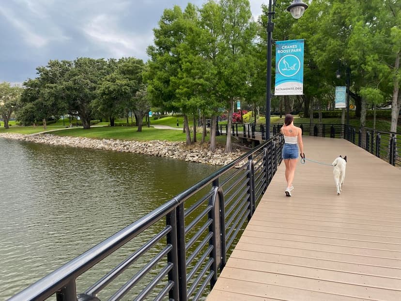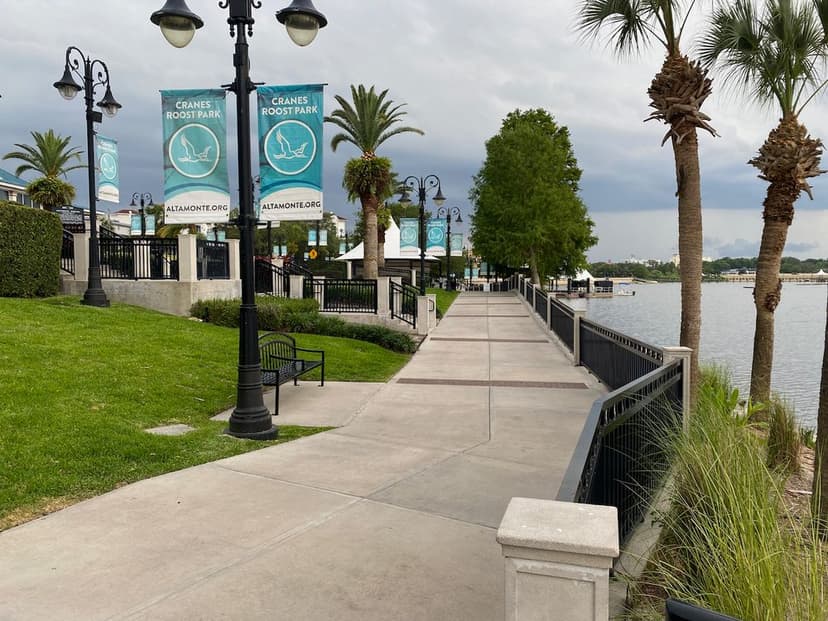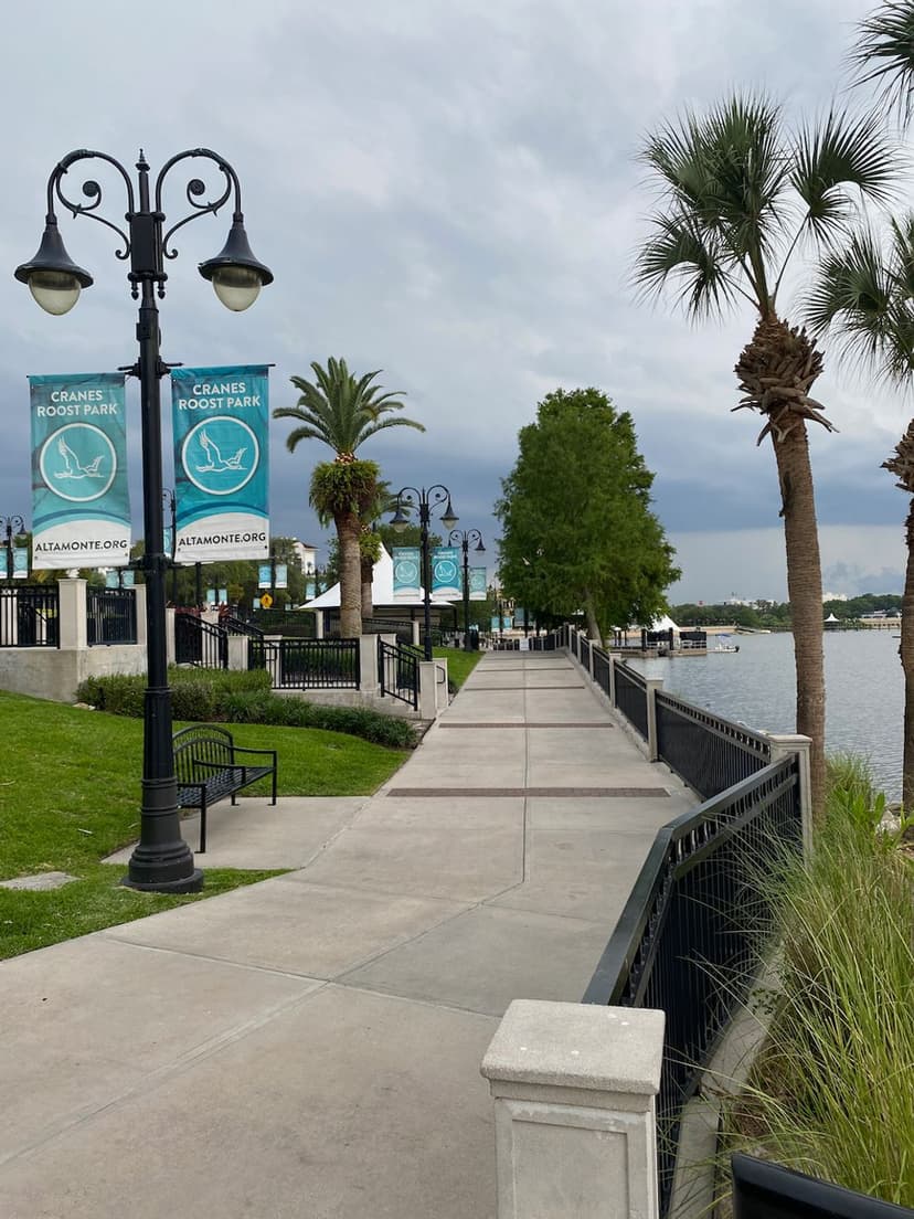 Cranes Roost Park in Altamonte Springs, FL, offers a scenic getaway for outdoor enthusiasts. Surrounding the stunning Cranes Roost Lake, the park features a one-mile paved walking path, perfect for leisurely strolls or more active jogs. Visitors can enjoy picturesque views of the water, lush landscapes, and fountains. The park regularly hosts community events, including concerts, festivals, and holiday celebrations at its amphitheater. Whether you're looking to relax on the lawns, watch the turtles and ducks, or attend an event, Cranes Roost Park provides something for everyone.